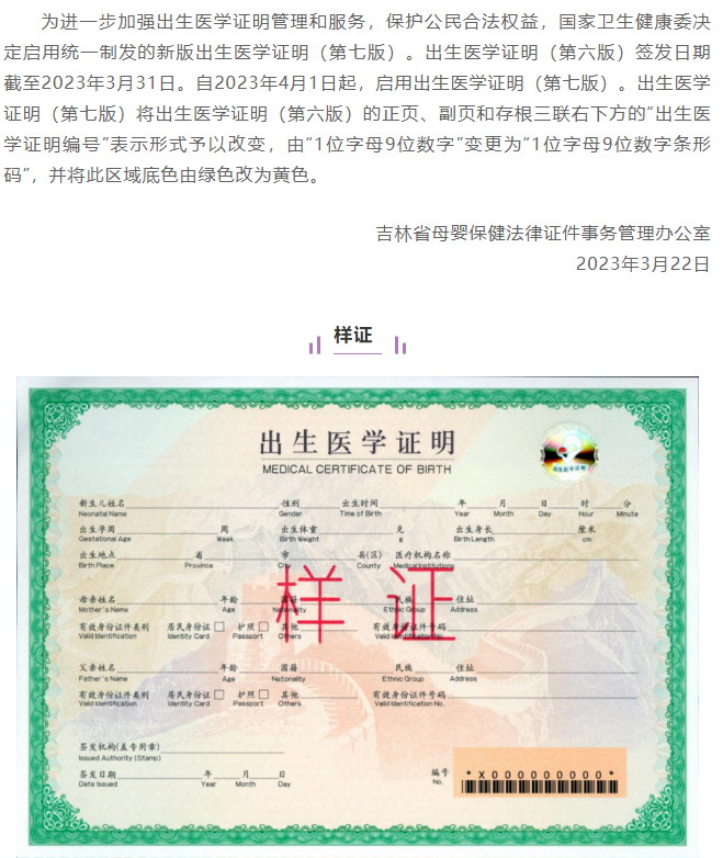 【群体保健动态】新版出生医学证明启用公告