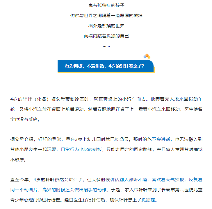 长春医声 | 这5点症状,可能是儿童孤独症的预警信号